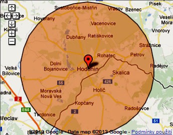 * Doprava v okruhu 10 kilometrů ZDARMA! - orientační mapa okruhu rozvozu zdarma